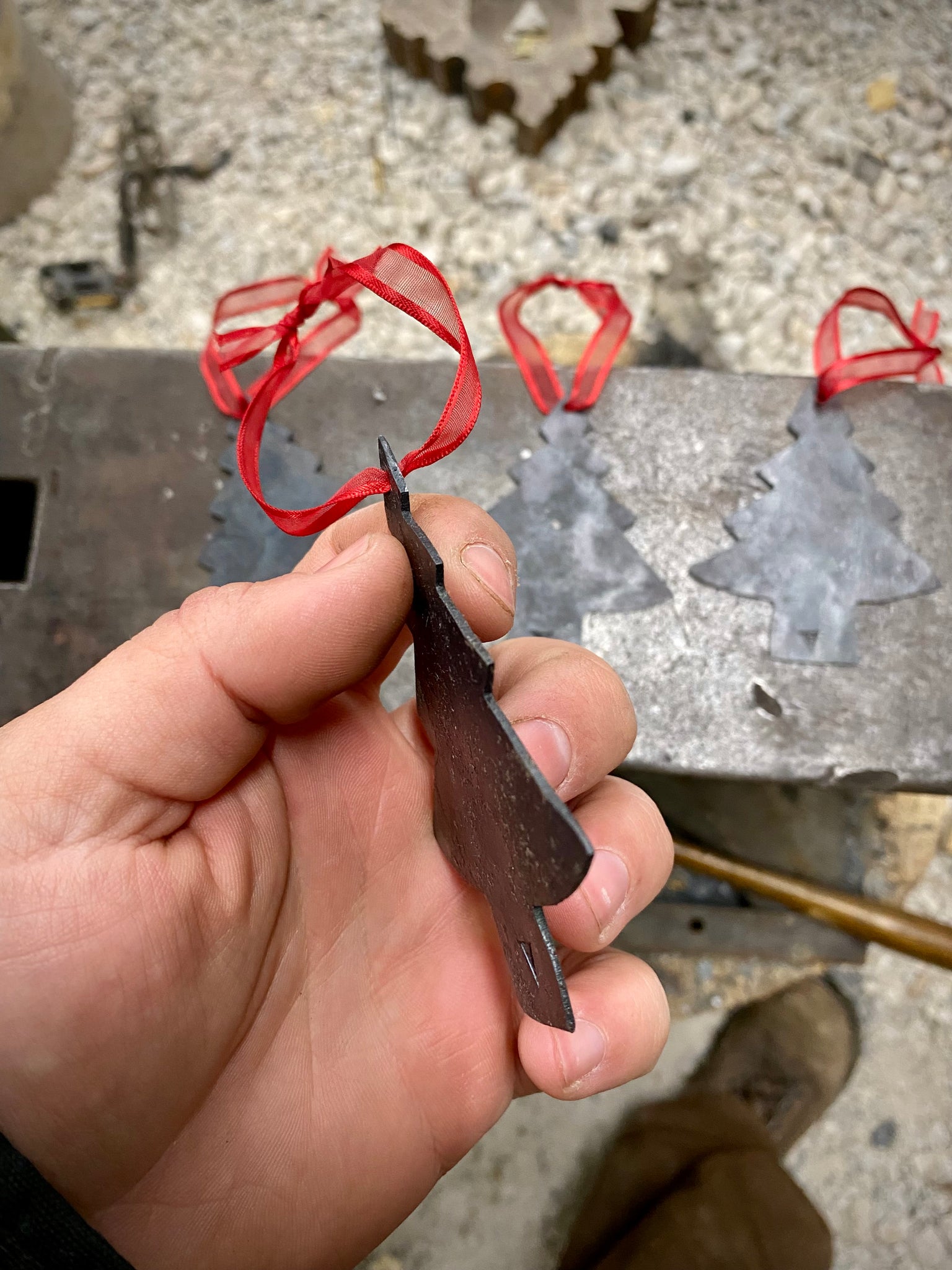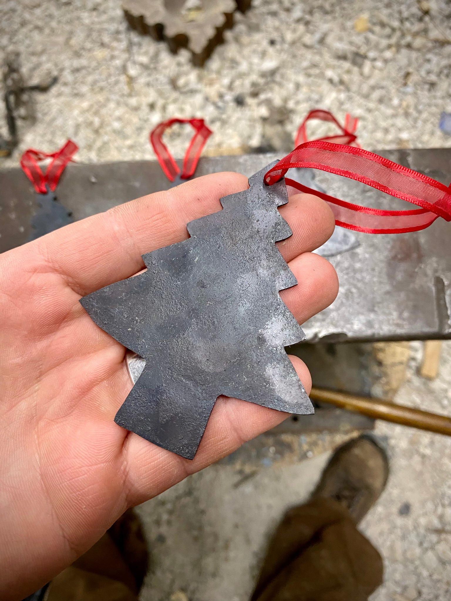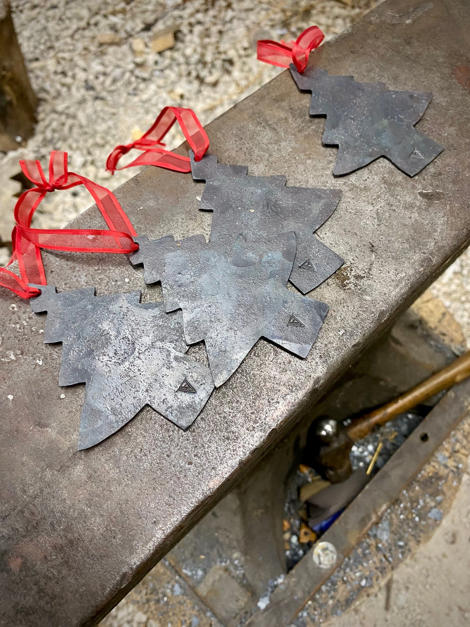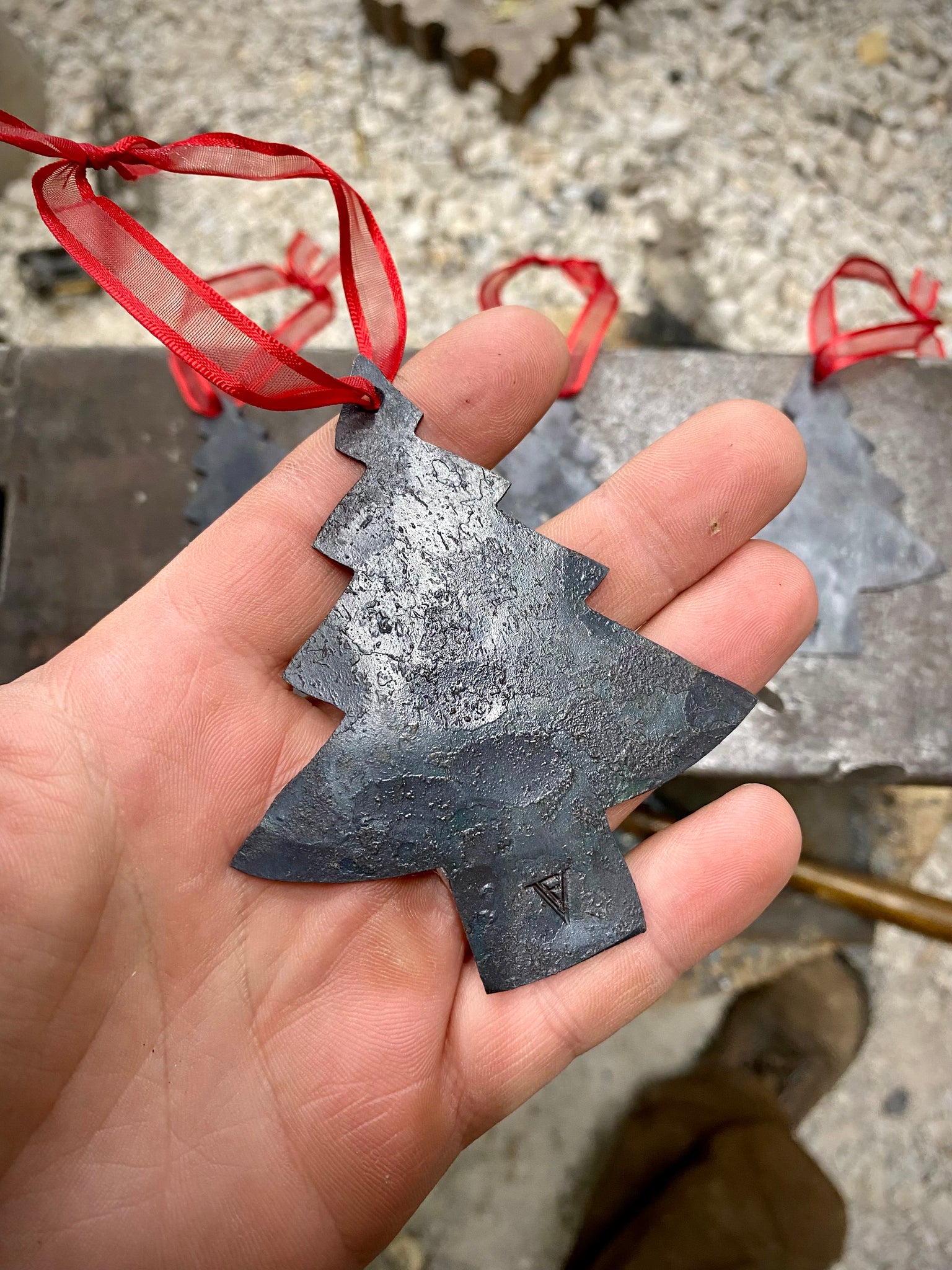 Each of these Christmas tree ornaments are hand forged and handmade, each one is a little different than the other!